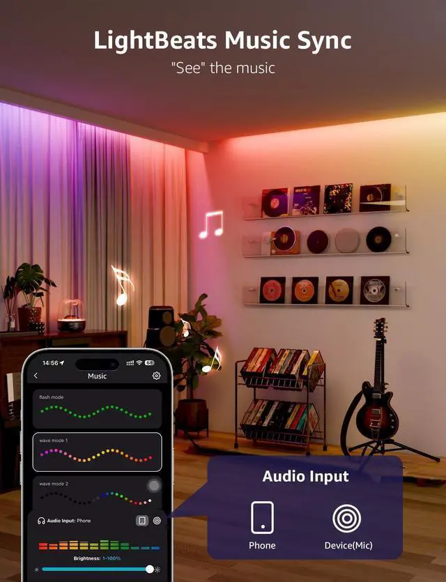 LightBeats Music Sync: LightBeats technology syncs the S2 lights dynamic lighting to music rhythms. Transform any space into an immersive dance floorperfect for parties.