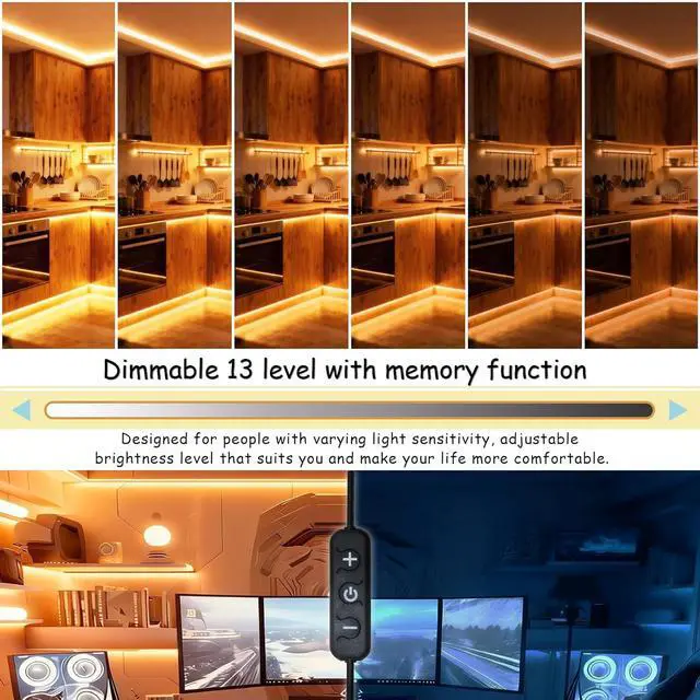 Your Perfect Mood: Set it once and forget it! This LED strip remembers your last brightness level among 11 adjustable settings thanks to the built-in memory function. Whether it's a soft night light for the baby's room or bright task lighting for your kitchen it powers back on exactly how you like it every time no need to readjust?? 11-Level Memory Dimming for