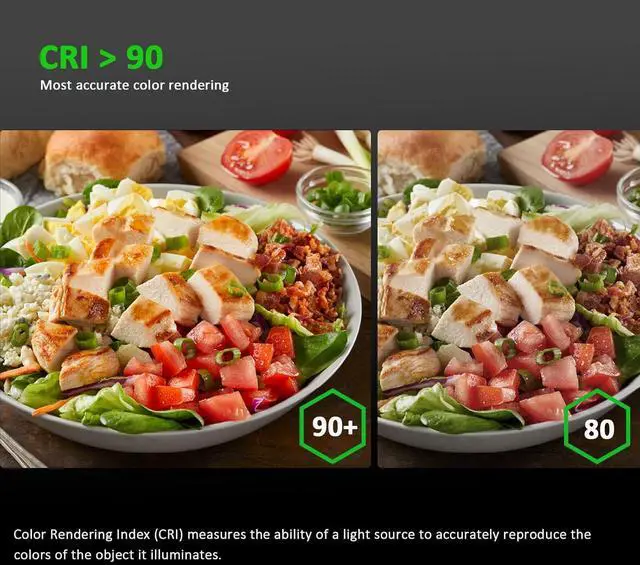 CRI > 90 ]: The color rendering index is also an important thing for LED lights the higher the CRI the stronger ability of color reproduction also reduce the eye fatigue[ Easy to