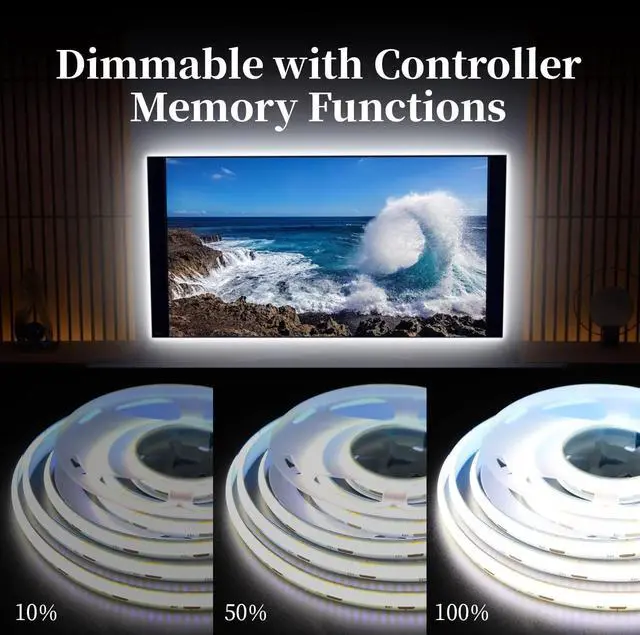 5V USB COB Led Strip Lights iNextStation cob led light strip is 6.56FT with 640 LEDs (320 LEDs/M) creates a bright and even lighting environment have more densely distributed LED chips Linear lighting no more worries about dark spot which is ideal for reducing eyestrain. The led strips with memory function and 10 Levels brightness adjustmen (0%-100%) you can adjust the brightness of the light as you like. USB Powered Led StripThe Cold white 5v usb cob led strip lighting Work at 5V this flex led light can be powered by USB making its power supply versatile.