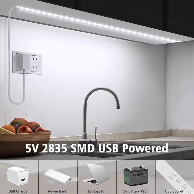 High Brightness LED Strip Lights: This 5V USB LED strip light emits 6000 K cool white light 9.8 ft/3 meters 180 LEDs suitable for bedroom kitchen island backlight photo frame and other occasionsEasy to