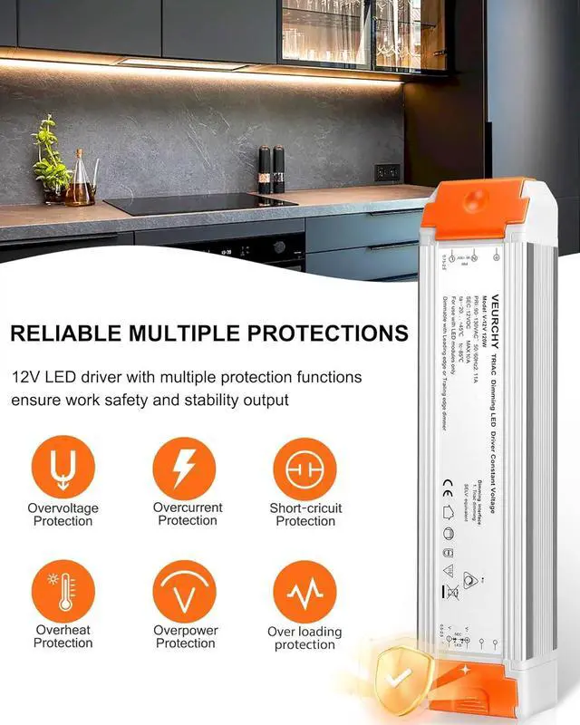 LEDs3-Year waranty: VEURCHY is committed to ensuring the quality of 120W 12V dimmable LED power supply and we offer a 3-year waranty. If you encounter any issues with installation troubleshooting or product functionality our team is prepared to provide timely support within 24 hoursSafety protection: The dimmable led power supply 12v maximum power is 120 watts and 12V with short-circuit protection overcurrent protection overvoltage protection low-voltage protection and automatic recovery mode protection