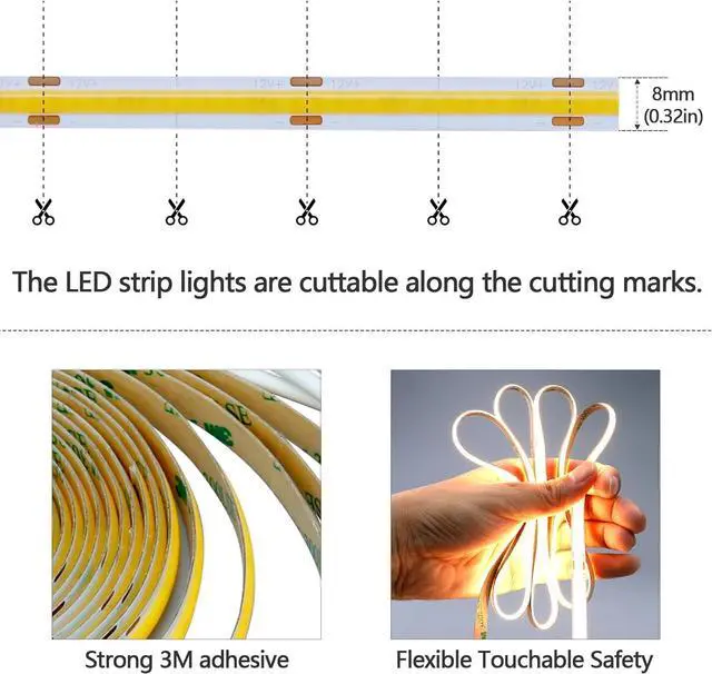 COB LED STRIP320LEDs/M 1600LEDs/5M COB light strips have more dense LED chips Which make the emitting units nprecedentedly close to each other and create super even lighting performance. At the same time it brings higher luminous efficiency.