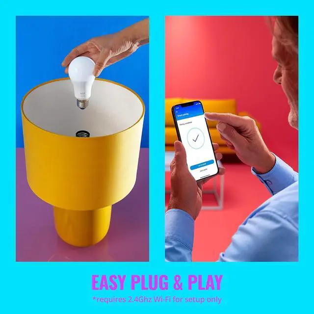 Just screw in your new bulb download the WiZ Connected app and connect to 2.4GH z Wi-Fi! EASY TO USE - Adjust the light bulbs with your smartphone voice the WiZ remote control or by using your existing wall switch. Works with Google Home Alexa and Siri Shortcuts. EASY TO AUTOMATE - Using the WiZ Connected app you can schedule your wifi light bulbs to automatically turn on and off dim or change color according to your daily or weekly routines. EASY TO MONITOR - The Wiz Connected app can also provide an overview of the energy consumption of your lights.
