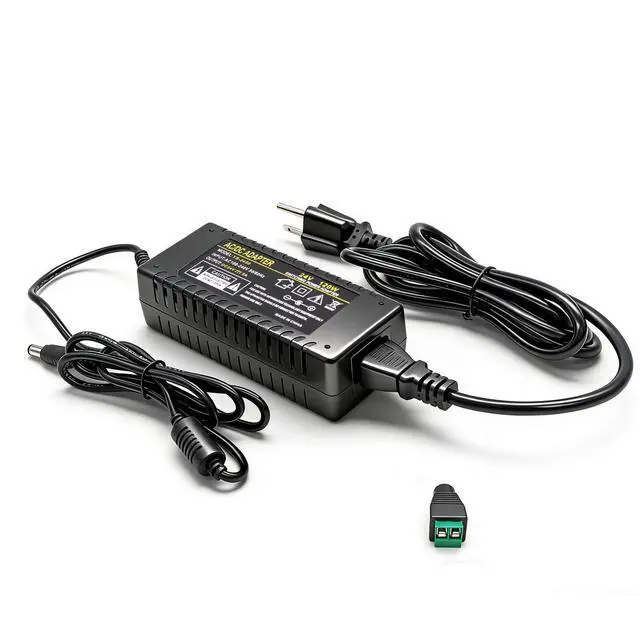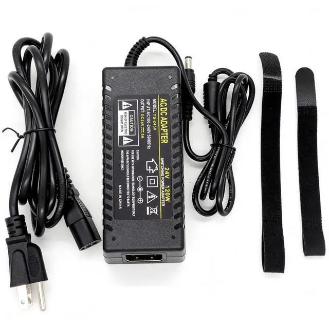 Output: DC 24V max 5A(1A 1.5A 2A 2.5A 3A 3.5A 4A 4.5A 5A). Suitable only for 24V devices with power 120W. standard 5.5 × 2.5 mm DC output plug includes female DC barrel connector. Ensure device compatibility before use! 24V 5A