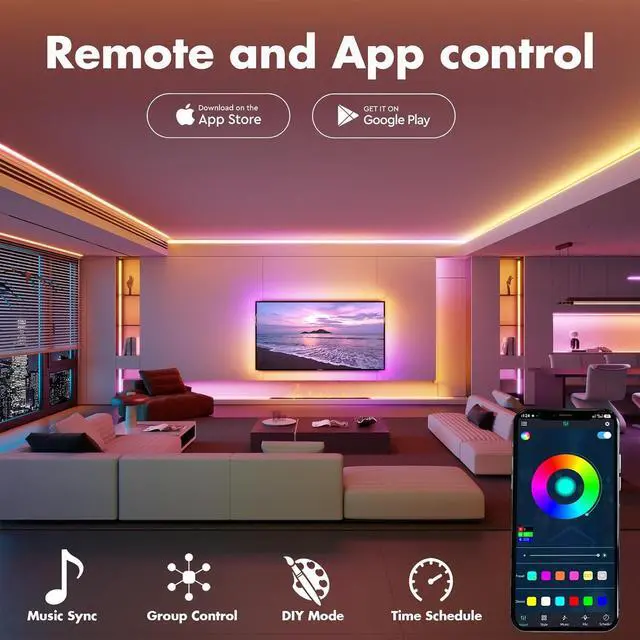 Timing and Scheduling: You can schedule the smart LED strip to switch on and off automatically via the mobile app as well as set a countdown timer set the Wifi LED lights to turn on and off at specific times turn all the lights on when you come home and turn all the lights off when you leave home.