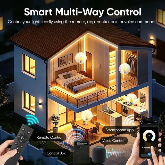 Smart App Voice Control & TimerControl your LED strip lights via Tuya Smart App remote control control box or voice commands through Alexa and Google Assistant. Compatible with smart speakers like Echo and Google Nest for hands-free control. Set schedules and timer functions to automatically turn lights on or offperfect for daily routines bedtime lighting and energy saving. Tunable White 2700K6500KEasily adjust from warm white (2700K) to cool white (6500K) to create cozy ambient lighting or bright task lighting. Perfect for lights for bedroom under cabinet lighting in kitchens closet light setups display cabinets and accent lighting.