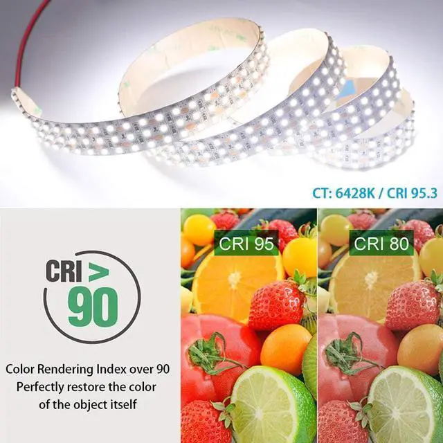 (IP20 Non-waterproof)ApplicationsCRI 95 LED strip is ideal for professional photography and videography because they provide exceptional color accuracy ensuring vibrant and true-to-life visuals. Triple row LED light strip is also perfect for backlighting cove LED lighting accent decor lighting under-cabinet LED lighting kitchen lighting living room lighting office lighting and industrial lighting.
