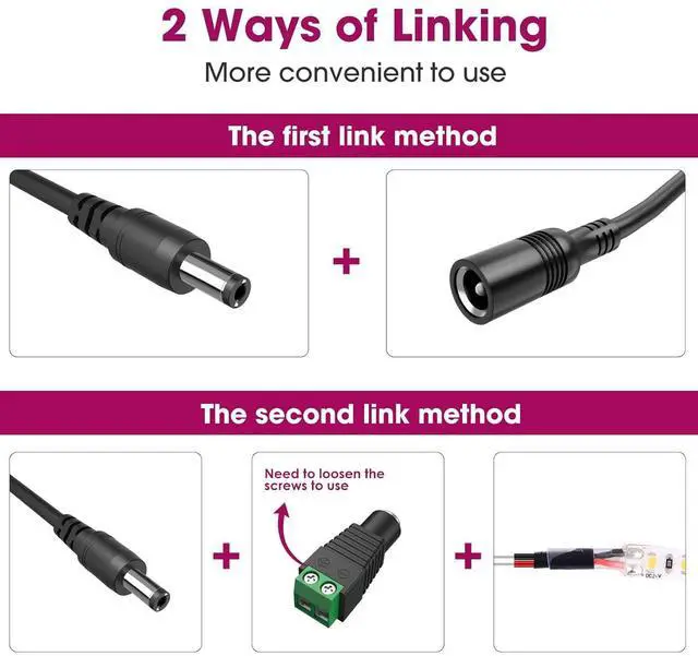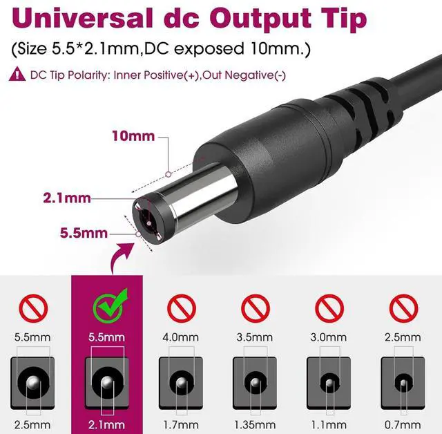 PLUG-AND-PLAY: Direct wall outlet insertion no hardwiring or soldering neededIncludes output cable with a standard 5.5 x 2.1 mm DC jack (positive tip) for seamless connection to strips controllers or dimmers; User-friendly no electrician required