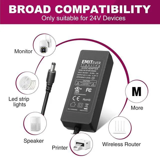 APPLICATION: Ideal for 24 volt LED lighting such as Emitever LED strips modules light bars under cabinet light and led string etc; also suitable for wireless routers 3D printers security cameras and other 24V devices under 96 watts?