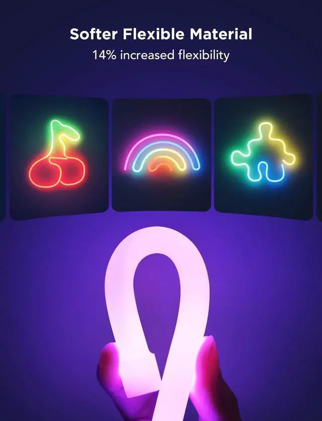 This Neon Rope light is made of a softer material, allowing the flexibility to increase by 14% compared with the previous generation. The smaller size and lighter weight making installation easier.