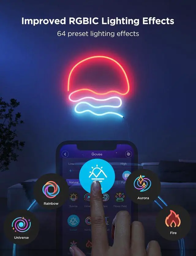 This new generation of Govee neon lights incorporates a new way to customize lighting effects through Govee Home App. The camera uses shape recognition to apply various DIY lighting effects throughout different lighting segments.