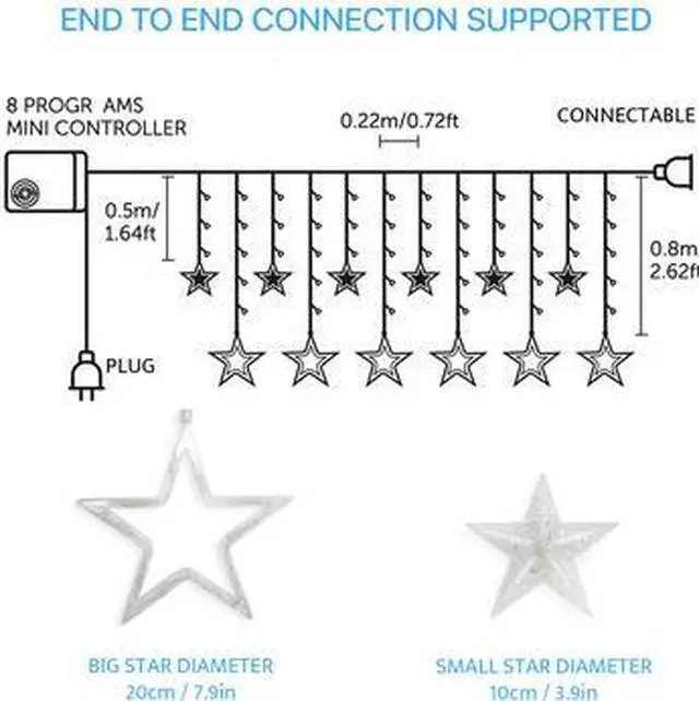 The Star Curtain string lights features 12 stars with 138LED Lights, Wire Length 8.2 ft, Curtain String Length 28inch, Big