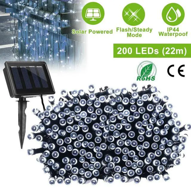 200 LED Solar String Fairy Lights Cool White Waterproof Outdoor Party Decoration