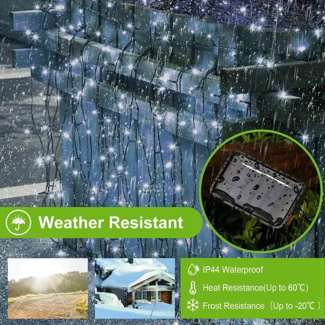 3. *IP44 Waterproof & 72ft Flexible Installation:Can still shine in rainy and snowy days with IP44 waterproof performance and can be flexibly wrapped on fences,handrails,lawn,trunks or gazebos with 72ft long cable.