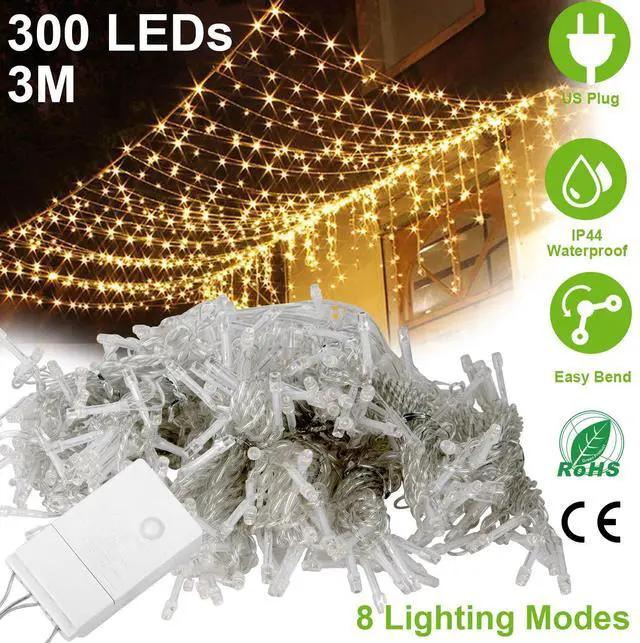 *IP44 WATER-RESISTANT:Made of premium plastic materials,and PVC casing for wires,which is with IP44 water-resistant and works great to withstand all kinds of weather all-round the year. Use the curtain light at rain,snow,frost or sleet days without worry.
