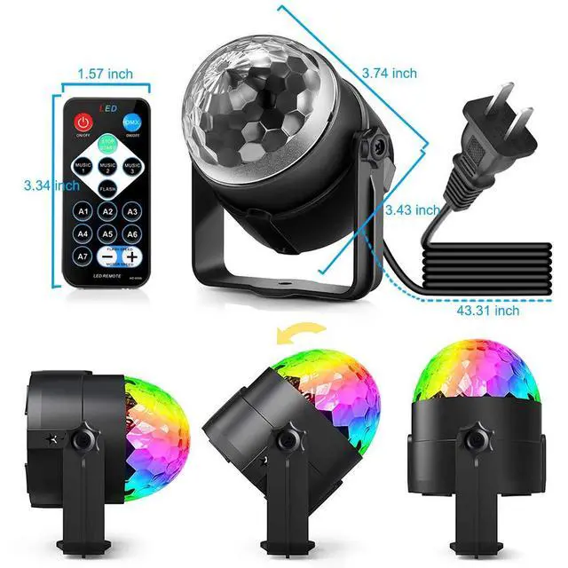Party lights with various working modes The party lights, You can control the working mode of disco ball light by remote control according to your preference, it has AUTO / Flash / Sound activated mode, bring high brightness and colorful, romantic lighting effect.