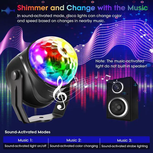 Sync the Beat with 3 Smart Sound-Activated Modes. No matter hosting a karaoke night or just dancing in living room, watch as the disco party lights become the life of the party, perfectly reacting to your music! It’s your personal DJ in a light!