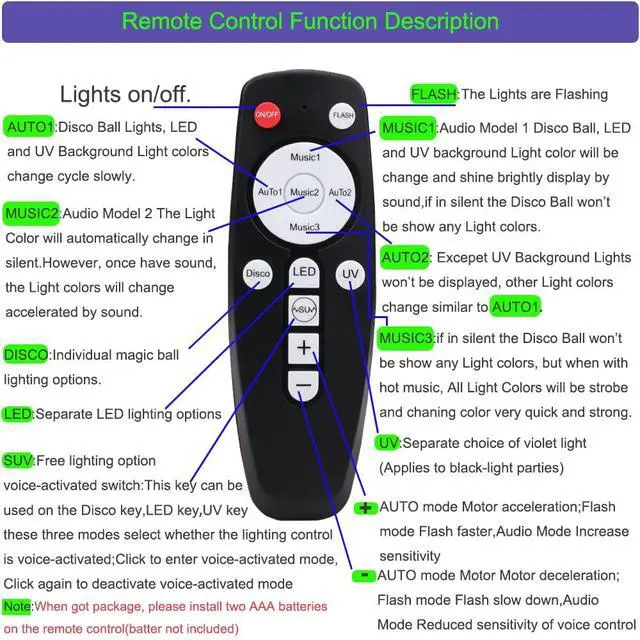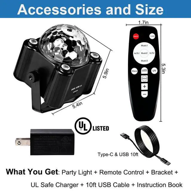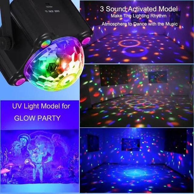 Music 3 [Dynamic sound control]:No Sound No Light,Once your Speaker Music Turn on, our Min Disco Balls magic ball, LED light and UV Light combination burst flash change color.this mode suitable for disco and dance Lights for parties
