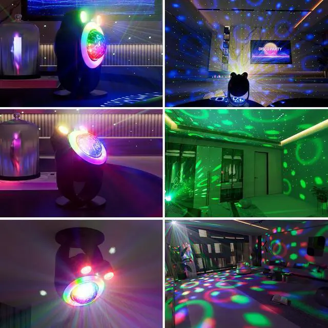 Upgraded 4-in-1 Disco Ball Lights: disco ball, star projector, RGB colorful background lights and colorful ring lights in one. Add color to your party.