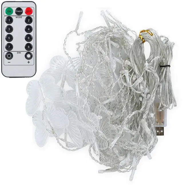 Comes with 16 delicate transparent and crystal butterflies and 80 cute small led lamp beads, our Butterfly Fairy Colorful Light can create a great and romantic atmosphere with colorful light. Featured with 8 modes, timer setting and brightness adjustable function, and come with a remote controller, just plug in USB interface and press the button select different modes and brightness to dress your room into a fairyland and take you into a dream world! Perfect for decorating Bedroom, Wedding, Party in Christmas, Valentine\'s Day and daily life!
