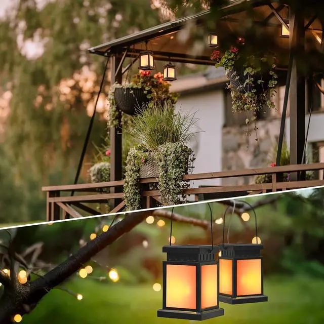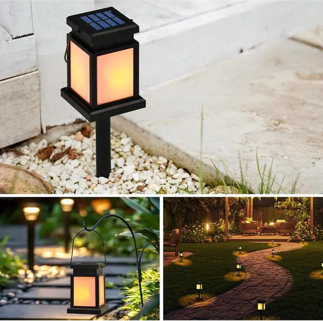 Solar Lanterns Outdoor: Solar outdoor lights mimic the appearance of Lantern shapes and are designed as a flame-lighting effect, which gives off vivid flame lighting at night. These solar lantern lights are perfect for your pathway, walkway, yard, garden, patio, lawn and gazebo decoration