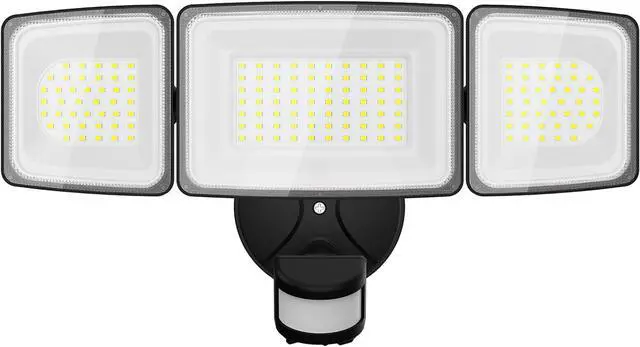 ADJUSTABLE DESIGN & EASY INSTALLATION: The triple heads of this security light can be adjusted to cast light in a 270-degree detection zone, so you can see everything thats happening in your yard; And just within 3 steps, you can start lighting your yards