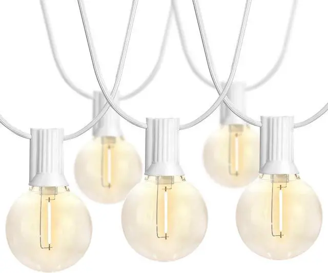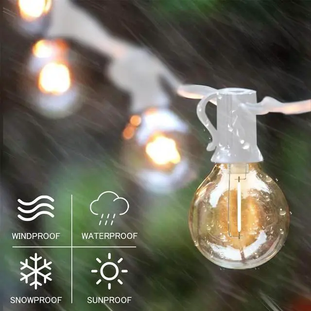 Shatterproof & WaterproofThe G40 bulbs are made of plastic and much safer and durable than traditional glass bulb, which won' t break if dropped. Outdoor string lights white cord withstand all weather for year-round enjoyment