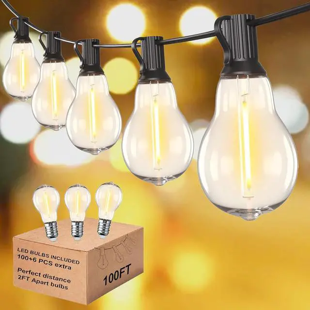 2200K Warm White & Cozy Ambience patio lights: These 100ft string lights provide warm white glow to illuminate your patio or backyard with bright ambiance for gatherings or evenings outside events. LED patio string lights can create a cozy atmosphere for your space, make your patio, garden, yard, balcony beautiful. String lights for inside also can light up dark corner in your house or office