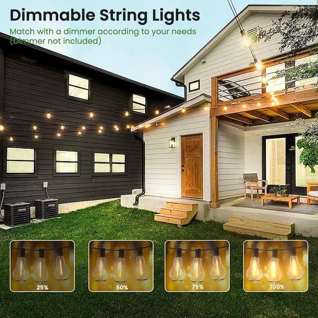 Dimmable String Lights: Porch string lights for outside are compatible with most dimmers in the market (Warm tips: Dimmer not include). These gazebo string lights can meet the needs of diffierent scenarios, gazebo lights are ideal for any indoor or outdoor space. You can flexibly adjust the brightness of porch lights outside according to your preferences to create a cozy ambience