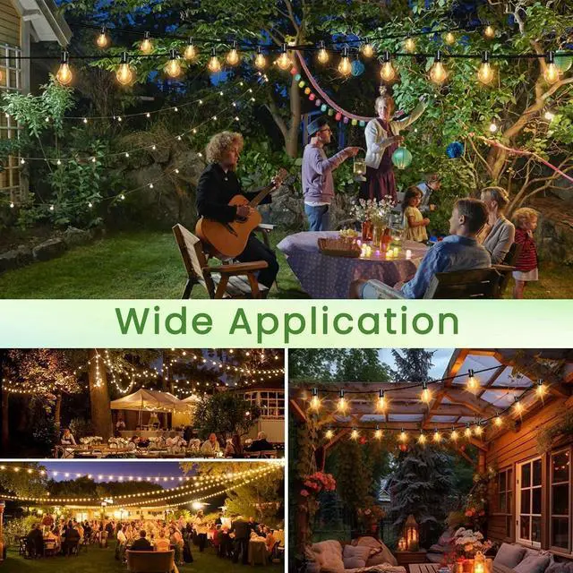Wide Application Outdoor Lights: These outdoor string lights can be used in a wide range, you can use these 100ft string lights to decorate and illuminate yor patio, bistro, porch, garden, yard, balcony, cafe shop, gazebo and other outdoor and indoor areas. And you can also use these pergola string lights at a outdoor party, romantic wedding or other outdoor events to add a cozy atmosphere