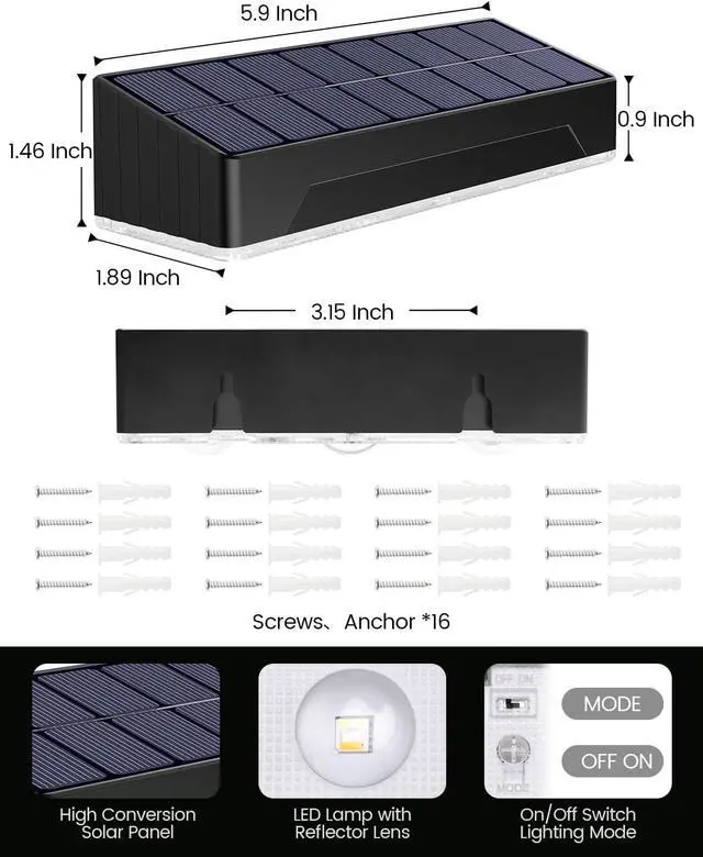 Upgraded 5 hours of sunlight = 30 hours of battery lifeOutdoor solar fence lights use advanced charging control chip and voltage, fully charged in just 5 hours of sunlight and can run for up to 30 hours, providing efficient and long-lasting outdoor lighting
