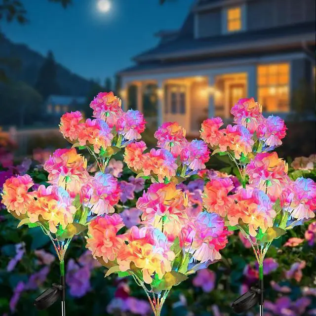 4-Color Light & 2 Lighting Modes: Neporal Hydrangea solar flower lights now emit 4 beautiful colors when lit. They feature 2 lighting modesconstant and flickerturning your home into a wonderland at night. Bright LED lights are entwined in adjustable stems, allowing you to shape your garden decorations as desired