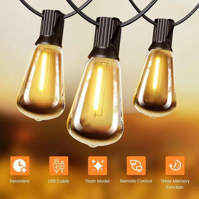 More Battery & Faster Charging: This ST38 outdoor solar string lights is equipped with a massive 5000mAh lithium battery which ensure a 10hours working time under 100% brightness, also, this patio lights utilizing the latest HMD high-efficiency charging technology, increase 20% solar charging efficiency, besides, this solar string lights support Type C charging just in case when sunlight is not sufficient during bad weather