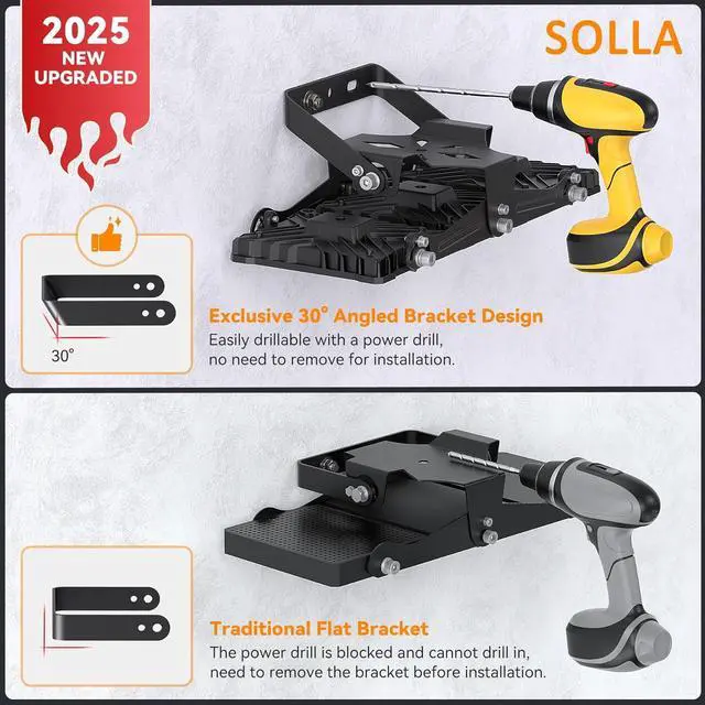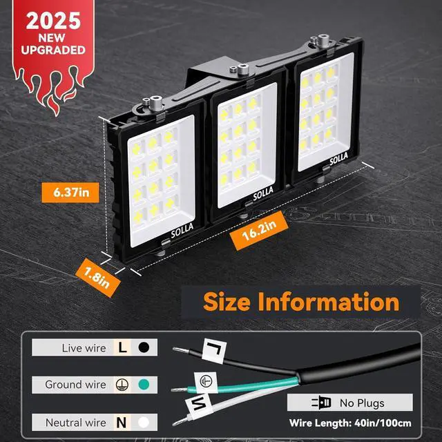 Exclusive Design: SOLLA LED Floodlight features a unique 3-in-1 wire connector for quick and easy installation. Patented adjustable brackets allow for 180° vertical and 330° horizontal rotation, giving you full control over your lighting direction