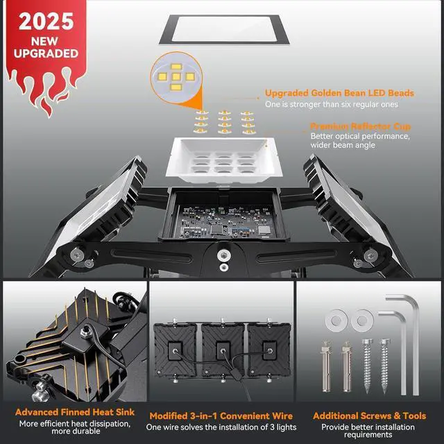 Durable Upgraded Materials: Built with a rugged die-cast aluminum housing and a toughened tempered glass cover, this floodlight ensures long-term durability. The upgraded materials improve light transmission, providing maximum illumination