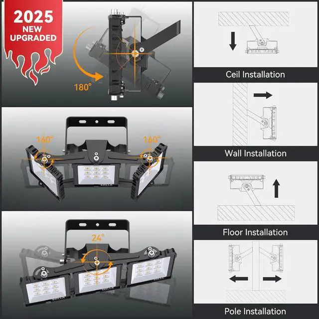 Long Lifespan and Weather Resistance: With upgraded materials, our floodlights feature an IP66 waterproof rating, making them fully resistant to all weather conditions, delivering reliable and consistent illumination in any environment