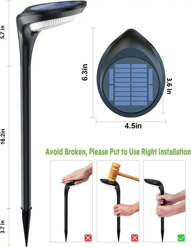 Waterproof IP65 & Tool-free Installation: Outside solar lights for walkway made of high-quality ABS plastic and durable construction, driveway solar lights specially designed to withstand all kinds of weather all round the year. The outdoor pathway lights easy to install, stick into ground or the courtyard lawn as landscape light or solar outdoor walkway lights, very convenient to use.