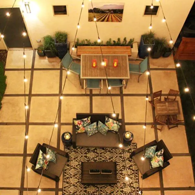 Patio lights outdoor waterproof: UL certified garden lights is built with weatherproof technology, which can withstand extreme temperatures, rain, wind, and damp climates. Commercial grade deck lights perfer for indoor and outdoor use, decorate the market, cafe, bar, city rooftop, restaurant, business festival, etc.