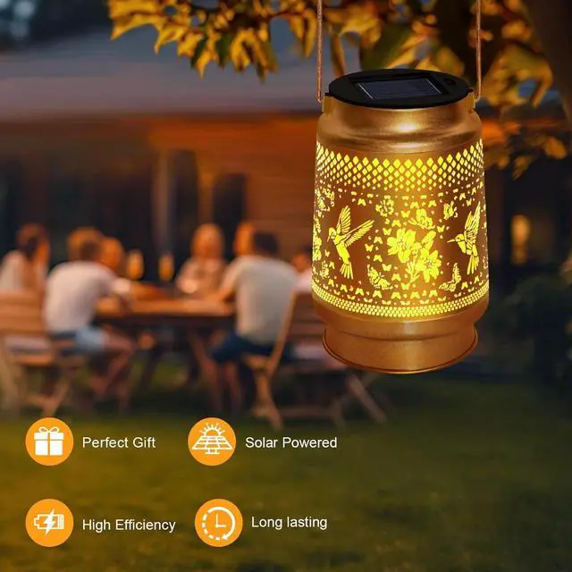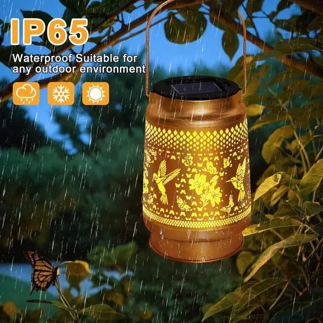 Graceful Decorative Design: The yeuago Solar Lantern features a breathtaking retro look with hollow out metal veneer, showcasing gorgeous hummingbird patterns that enhance the beauty of your garden or patio.