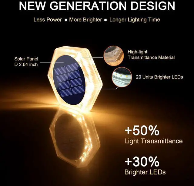 Elegance and safety When the night comes, 6 lights are on at the same time. Add light and decoration to your deck, dock, driveway, fence, step, patio, yard or garden. The 2700K warm white light provides more fun and safety for the night activities around the house.