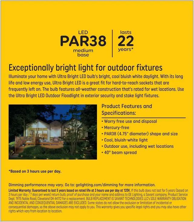 Includes 1 PAR38 (4 and 3/4-inch diameter) shape and size bulb