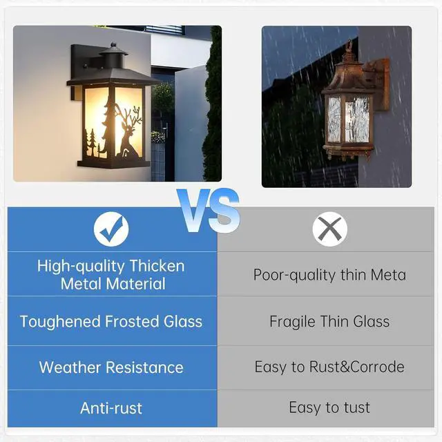 Waterproof & Anti-Rust & Weather ResistanceCombined with anti-rust heave-duty metal materials and, our exterior light fixtures is high IP65 waterproof rated, seamless connection, anti-rust, and anti-corrosion. No matter rain or snow, ultra-high or low temperatures, this outdoor light fixture can still keep stylish looking after years of using, no worries about the aging problem.