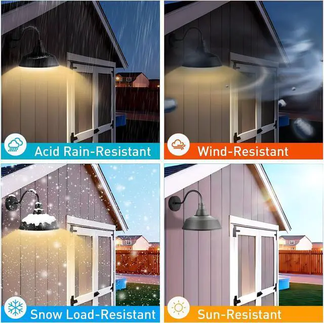 Versatile use: This barn lights feature a textured matte black finish with a gold interior, offering a classic and vintage look; Ideal for outdoor spaces like garages, warehouses, porches, exterior walls, courtyards, gardens and vacation homes
