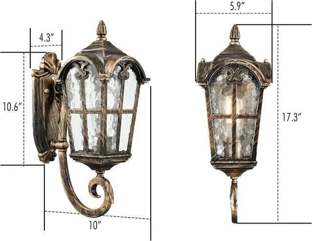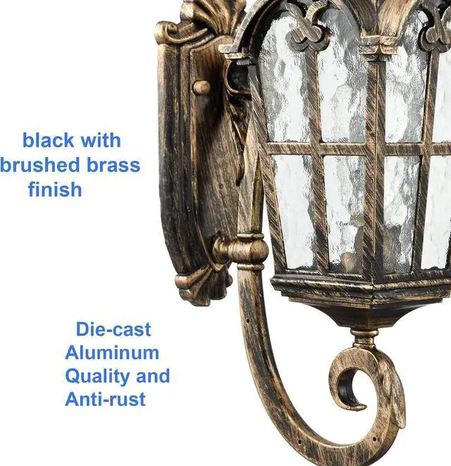 Antique Brass Finish: the patio wall light fixture features on black with brushed brass finish which present an antique brass look, elegant, durable, and antirust