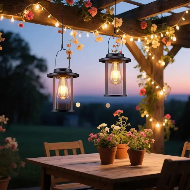 Solar Hanging Lanterns. Featuring upgraded high-efficiency solar panels, with 25% higher charging efficiency than similar products. After 6-8 hours of charging, it can illuminate for up to 12-15 hours. These lights are bright at 2700K and have a 1000 mAh battery that lasts dusk to dawn.