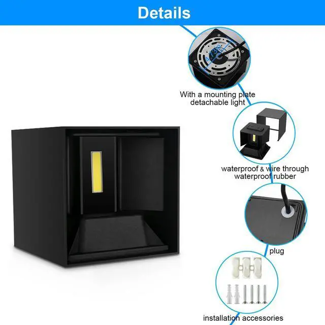 20W Square Outdoor Wall Sconce with Easy to Install USG Round Universal Mounting Plateoutdoor wall lights exterior hardwired design, including all mounting hardware, can be quickly and easily installed up/down directional or horizontal. Using the American Standard round mounting plate, can be more convenient to install, easy steps, and very stable after installation, not easy to fall off.