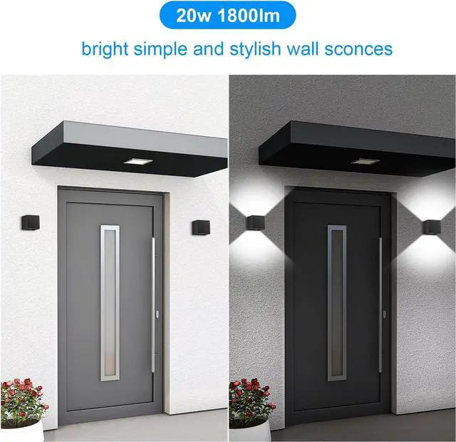 Energy Saving Outdoor Wall SconceThis 20W modern outdoor wall sconce delivers 1800lm of ultra-bright lighting. This porch light' s COB LED chips reducing energy use by up to 80% and eliminating frequent replacement.