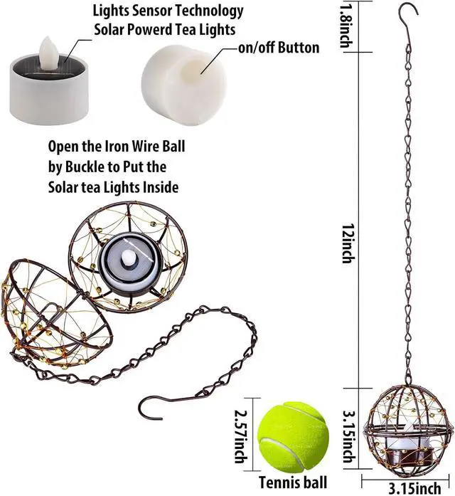 Easy Installation and Adjustable: With a 3.15 -inch diameter beaded copper wire ball holder and a 12-inch long hanging chain, these lanterns are not only aesthetically pleasing but also easy to hang and adjust in various outdoor spaces such as trees, fence posts or patio covers, pergolas, trellises, or backyard.