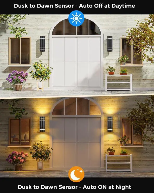 Dawn Sensor: The modern outdoor lights for house comes with a built-in dusk to dawn sensor, automatically turning on at dusk and off at dawn. This feature eliminate the need for manual switching, making it super convenient for everyday use.